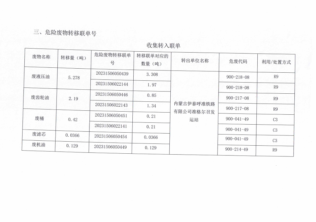 内蒙古伊泰呼准铁路有限公司准格尔召����� �������Ƴ������������ �������Ƴ����������� �������Ƴ����������� �������Ƴ�������发运站 2023年度危险����� �������Ƴ������������ �������Ƴ������������ �������Ƴ������������ �������Ƴ�������废物信息公开