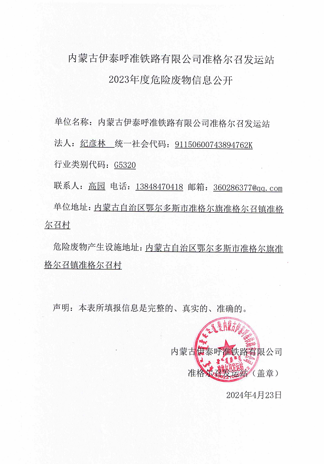 内蒙古伊泰呼准铁路有限公司准格������� �������Ƴ������������ �������Ƴ������������ �������Ƴ������������ �������Ƴ���������� �������Ƴ�������尔召发运站����� �������Ƴ������������ �������Ƴ������������ �������Ƴ������������ �������Ƴ������� 2023年度危险废物信息公开